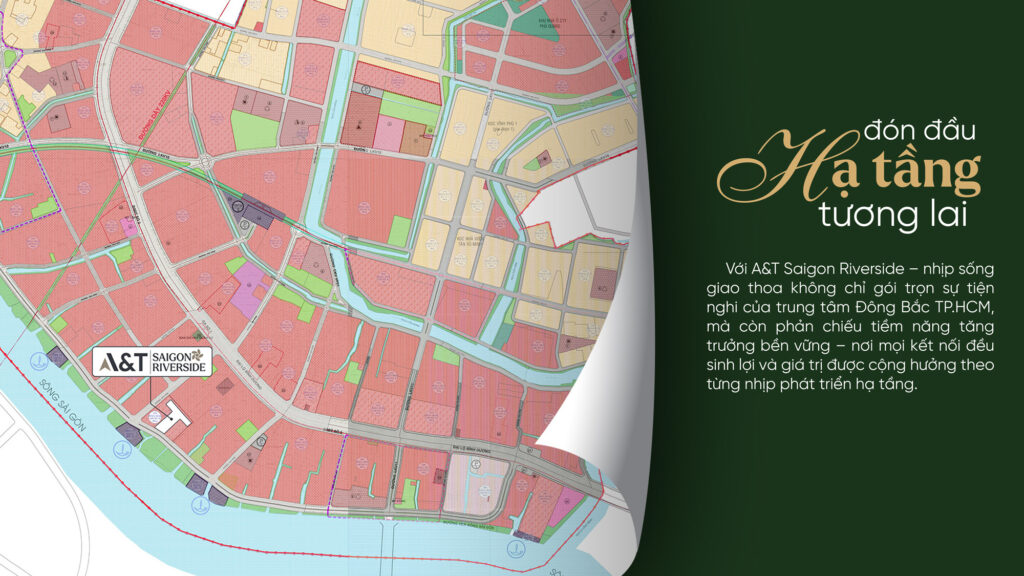 Sở hữu vị trí ” CẠNH SÔNG – TRONG PHỐ “ Hạ tầng đồng bộ, tương lai phát triển: Ngoài Quốc lộ 13, khu vực còn hưởng lợi từ các dự án lớn khác như tuyến Metro kết nối Bình Dương – TP.HCM, cầu Vĩnh Phú nối qua Quận 12, cao tốc TP.HCM – Chơn Thành và tuyến đường ven sông Sài Gòn. Sự hoàn thiện của mạng lưới giao thông này sẽ tạo ra một cú hích mạnh mẽ cho giá trị bất động sản của AT Saigon Riverside.